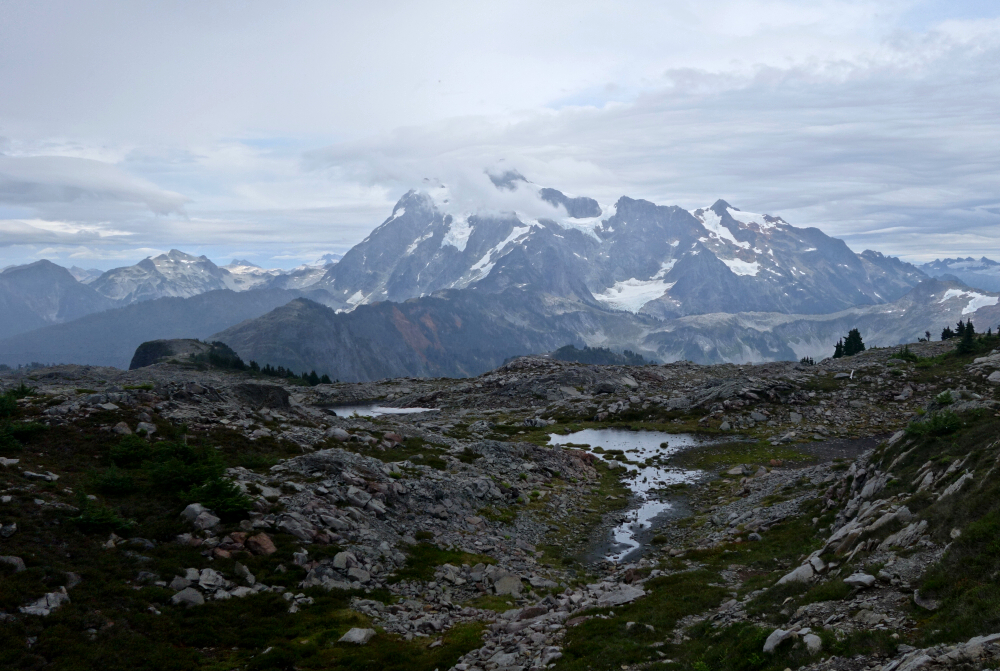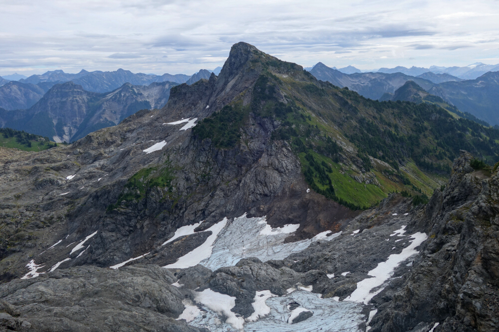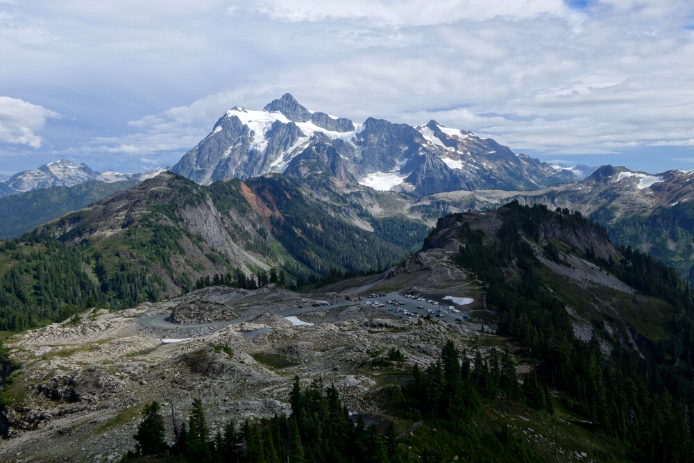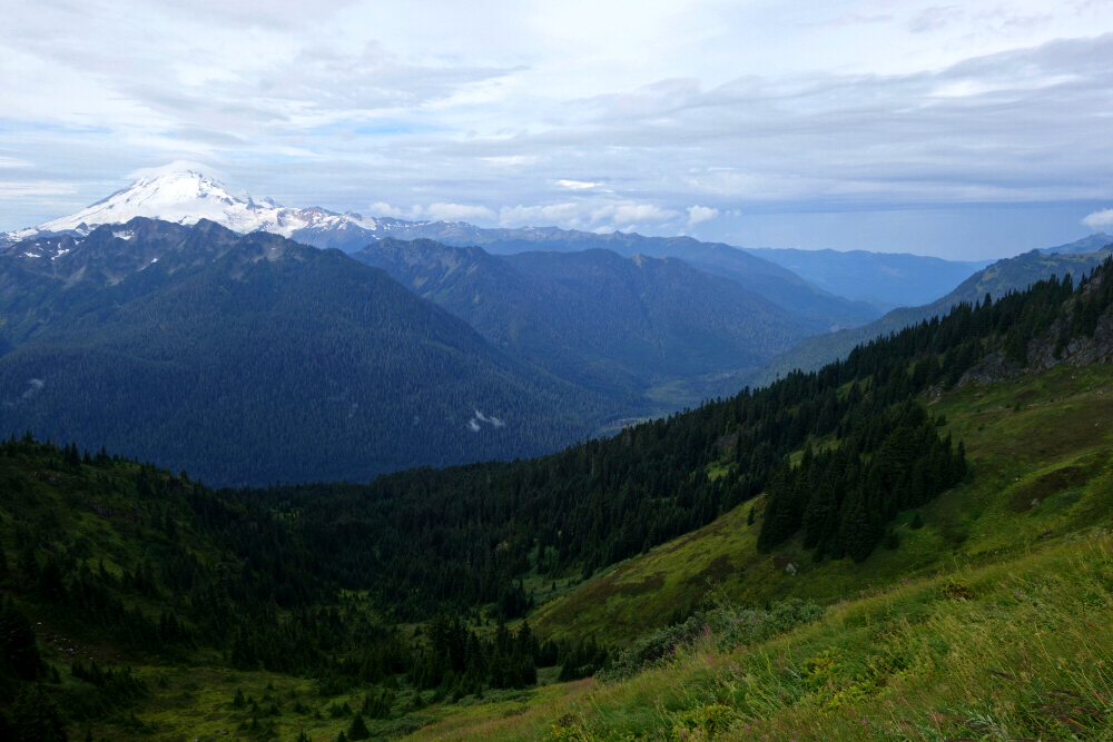 Made the most of a marginal weather day in late August rambling about a corner of the North Cascades I affectionately refer to as "Bakerland". As my informal name suggests, this is the area around Mount Baker and Mount Shuksan including the peaks and tributary valleys immediately north of Nooksack River Valley. Served by Highway 542, the lifeblood of Mount Baker Ski Area and which literally dead ends in the aptly named Artist Point parking lot just beyond, this zone has been my go-to for year-round outdoor adventures for ages. Why? Because the scenery is stunning, among the finest in the Washington Cascades with peaks, glaciers and deep river valleys in all directions, the ski touring is superb, wilderness access couldn't get any better and as of circa 2017 it's practically in my back yard!