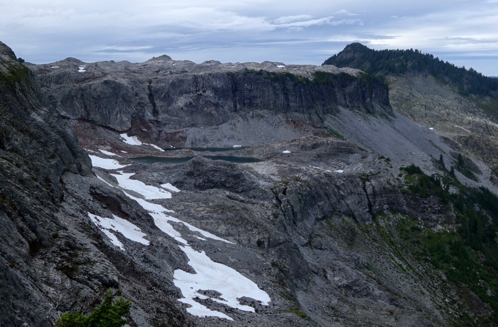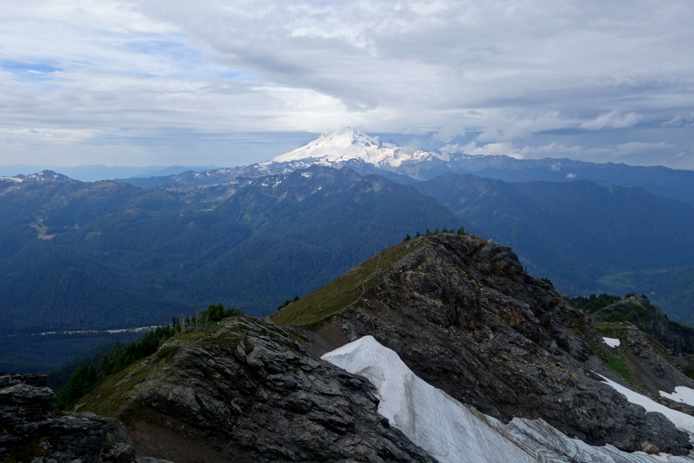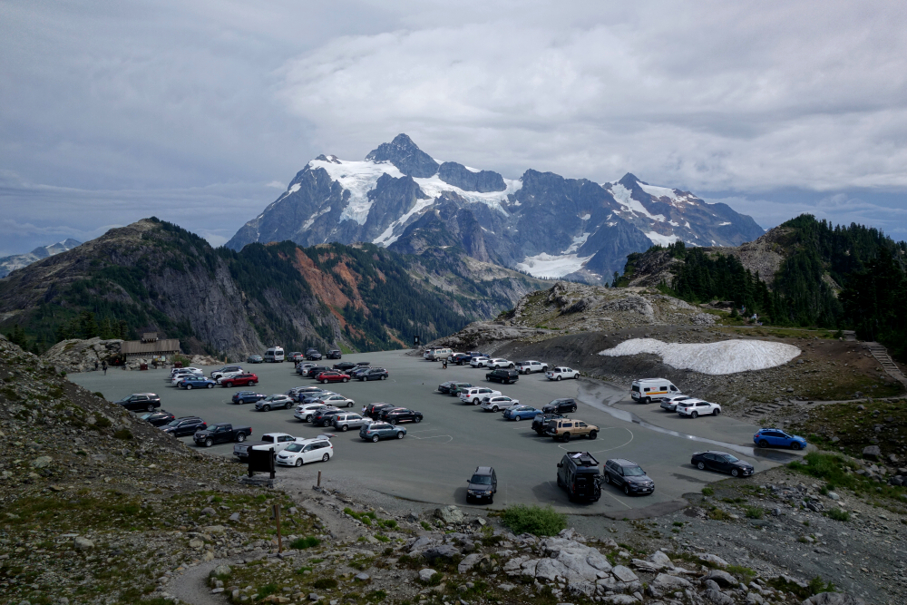 Hunkered down for a few minutes thinking perhaps it was just a passing shower, but no such luck. Abandoned my designs on the main summit, mainly because I don't much care for the slip 'n slide of wet, steep heather, and headed back to the trailhead with my tail between my legs. Back by 2 pm, and naturally the rain had stopped by then. With a few hours to burn, I drove on up to Artist Point for a short hike to Table Mountain. Previously been up it, but that was in the winter many moons ago. The dusk descent from the summit directly to Bagley Lakes marked the culmination of a ripper day shredding laps out by Coleman Pinnacle! Alas, there'd be no shredding this time, just the untimely return of rain which shooed me off the summit for the second time that day. Back to the trailhead, whereupon surprise! it ceased raining again. And so over to Huntoon Point I go for no other reason that it being a named summit not 5-minutes from the parking lot. Got to the top, at which point yup, you guessed it, the rain returned. Back to the parking lot one final time and having run out of day and silly peaks to tag and especially my patience with the unpredictable weather, I did what I should have done hours ago and drove home!