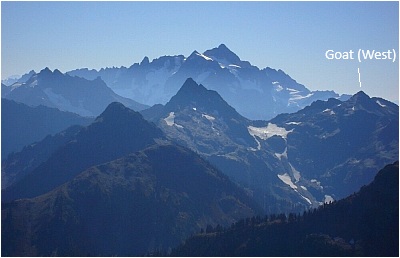 For this latest installment in said back yard, I decided on an objective that caught my eye several years ago from the lookout on nearby Winchester Mountain - Goat Mountain. The peak is comprised of two main summits: the lower West Peak being served by a maintained trail starting from NF 32. My plan was for a twofer by taking this trail up and over West, then down to the saddle between it and the main peak and finishing via the West Ridge to the true summit. I'd then return via a steep cross-country traverse across heather and grass on the south side of the peak to intersect the trail where it ascends the South Spur of West somewhere above treeline. This was all fine and dandy despite the approximately 5000 ft of gain and 10 kilometers round-trip to do so, but what I didn't consider in my plan was the earlier than predicted arrival of rain.