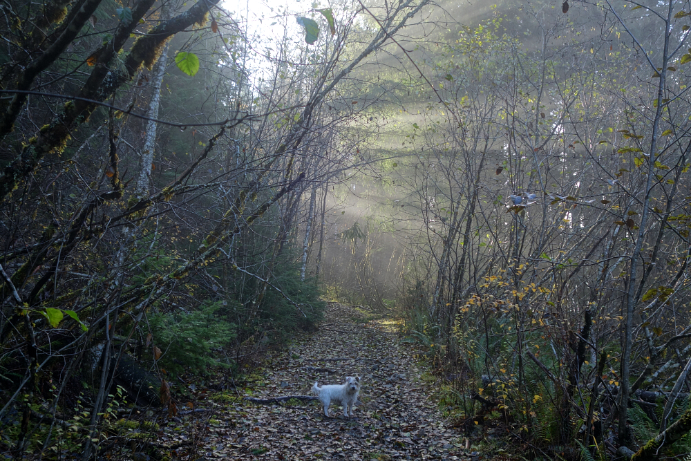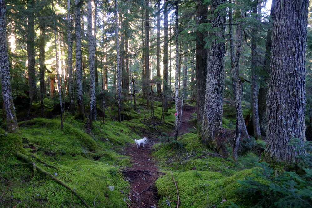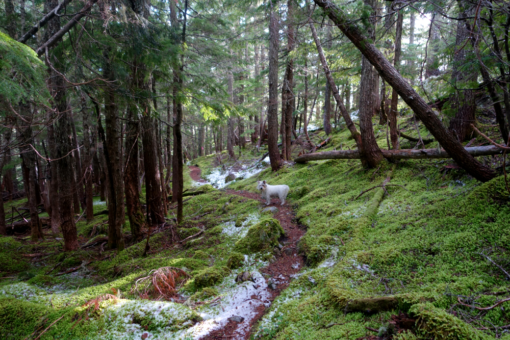DeBeck's is a forested hill immediately north of Squamish city limits, adjacent to Alice Lake. Several mountain bike trails provide access to its radio-tower-infested summit from the south, but only one approaches from the north-the aptly named North Ridge Trail. With nothing better coming to mind on an otherwise marginal late-October day, I tossed my backpack and Pepper into the truck and headed for the North Ridge trailhead for a lazy day hike.