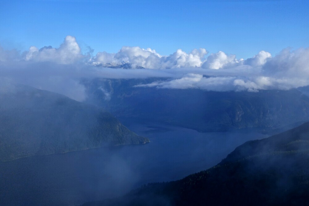 Out on the Sunshine Coast, north-northeast of the town of Sechelt, lies Spipiyus Provincial Park. As a destination, the park is rather unremarkable, existing primarily to protect pockets of old-growth forest and the fauna that depend on them. That said, there are a couple of "peaklets" with decent trail access that tend to attract local prominence-baggers, starting with the park's namesake and highest point, Spipiyus Peak. As it's reportedly a completely viewless summit, I saw little appeal and instead turned my attention to the only other officially named peak in the park-Mount Hallowell. Home to a now-dilapidated fire lookout, the summit is said to offer expansive views over the maze of lakes and inlets that define the region. I say "said to" because low-lying cloud obscured most of those views on this particular day-but more on that in a moment.