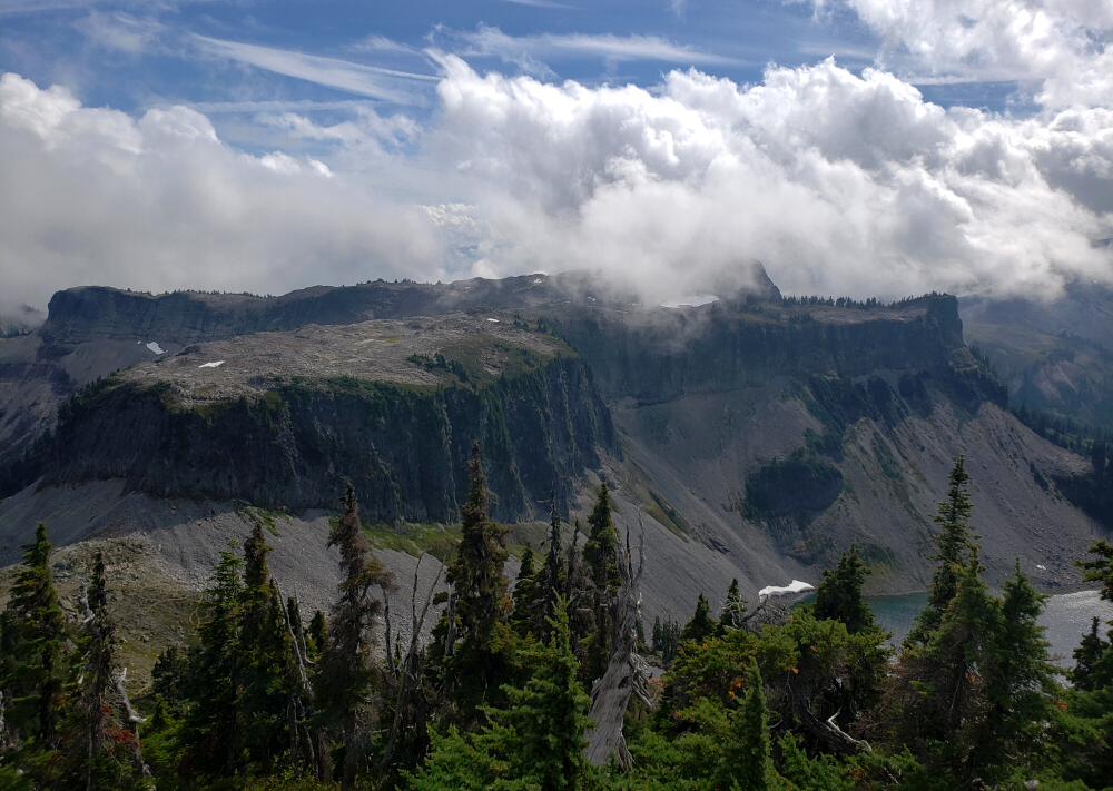 Hunkered down for a few minutes thinking perhaps it was just a passing shower, but no such luck. Abandoned my designs on the main summit, mainly because I don't much care for the slip 'n slide of wet, steep heather, and headed back to the trailhead with my tail between my legs. Back by 2 pm, and naturally the rain had stopped by then. With a few hours to burn, I drove on up to Artist Point for a short hike to Table Mountain. Previously been up it, but that was in the winter many moons ago. The dusk descent from the summit directly to Bagley Lakes marked the culmination of a ripper day shredding laps out by Coleman Pinnacle! Alas, there'd be no shredding this time, just the untimely return of rain which shooed me off the summit for the second time that day. Back to the trailhead, whereupon surprise! it ceased raining again. And so over to Huntoon Point I go for no other reason that it being a named summit not 5-minutes from the parking lot. Got to the top, at which point yup, you guessed it, the rain returned. Back to the parking lot one final time and having run out of day and silly peaks to tag and especially my patience with the unpredictable weather, I did what I should have done hours ago and drove home!