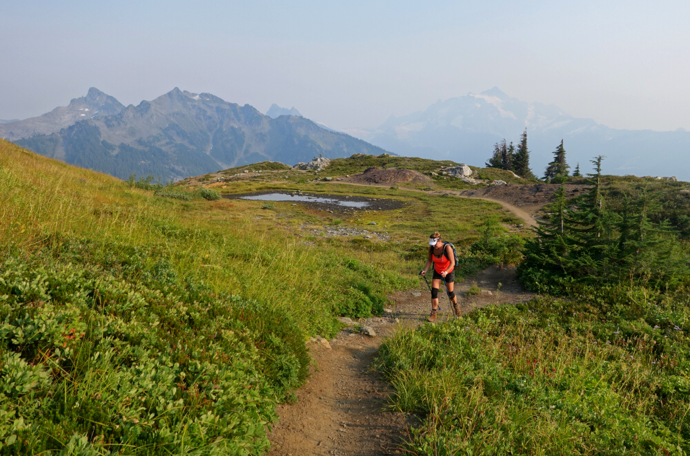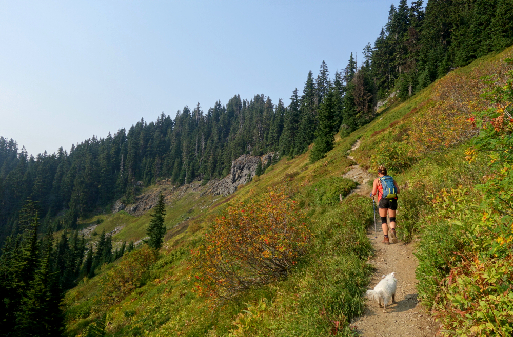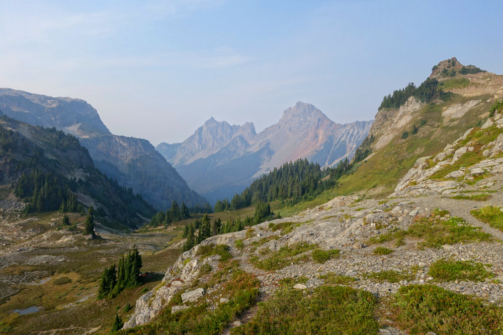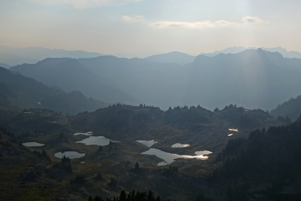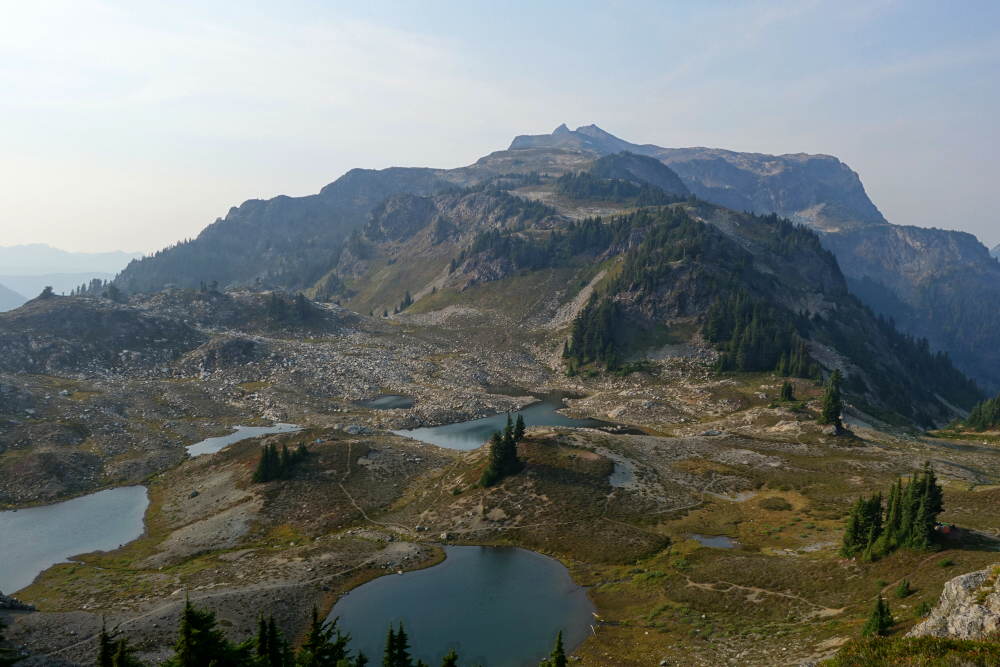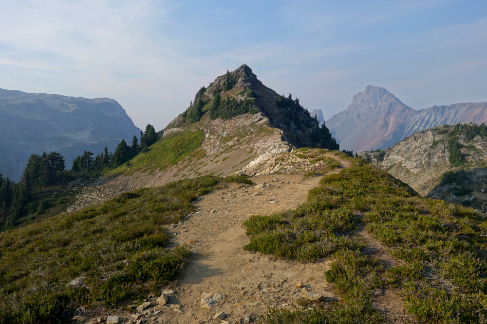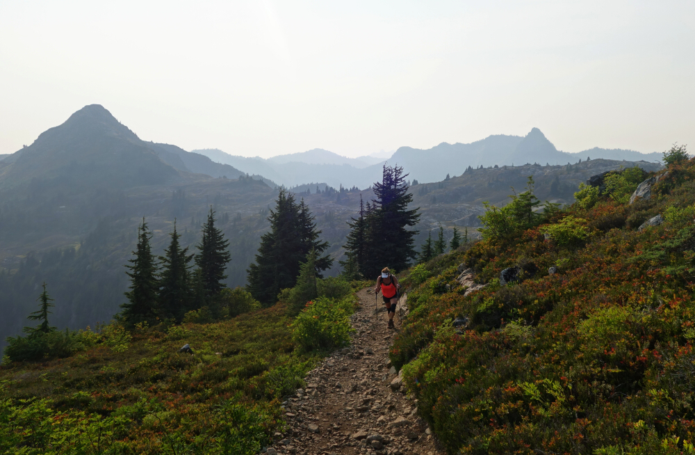 Spent a couple-three days in early September doing the vanlife thing and hiking with my SO out in the Mount Baker backcountry. First up on the agenda was a quick late-afternoon rip up to Yellow Aster Butte (YAB). This was my second time kicking dirt up the Tomyhoi Lake Trail, having skipped YAB on the first visit and instead continued on to bag Tomyhoi Peak. Beautiful area as always-good trails, excellent scenery, and all that-except I always seem to visit toward the end of summer or into fall, when fire-smoke season is often at its peak. At least this part of the North Cascades is much closer to home than it was back in 2003 when I was still Seattle-based, and despite the limited distance views on this day, it's hard to beat the view-to-effort ratio on this one.
