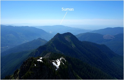 There are a couple of Sumas Mountains that I'm aware of. One lies in the Fraser Valley, immediately northeast of Abbotsford, BC, while the other sits about 24 kilometres to the south, just across the border in Washington State. This report is for the latter. I've been up the BC Sumas a couple of times, where a fantastic view unfolds over the Fraser River just downstream of its confluence with the Harrison River. As is often the case with these lower peaks, the best viewpoint isn't from the actual summit, which is treed and cluttered with communications infrastructure. The Washington Sumas is no different in that regard-its summit is also viewless and even requires a bit of bushwhacking to reach. That said, there are numerous excellent viewpoints along the way and near the top, including one looking back toward its northern namesake.